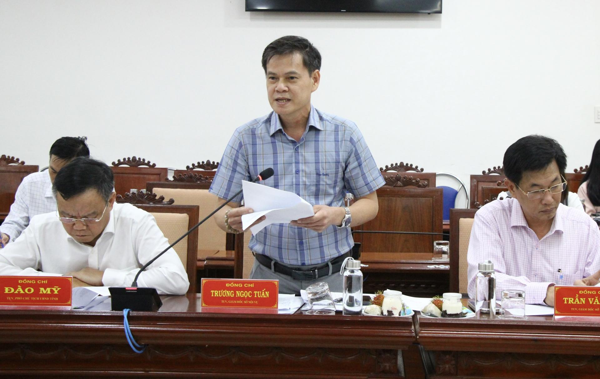 Giám đốc Sở Nội vụ Phú Yên Trương Ngọc Tuấn trình bày phương án bố trí, sắp xếp cán bộ, công chức, người làm việc tại cơ sở 2 tại Phú Yên. |